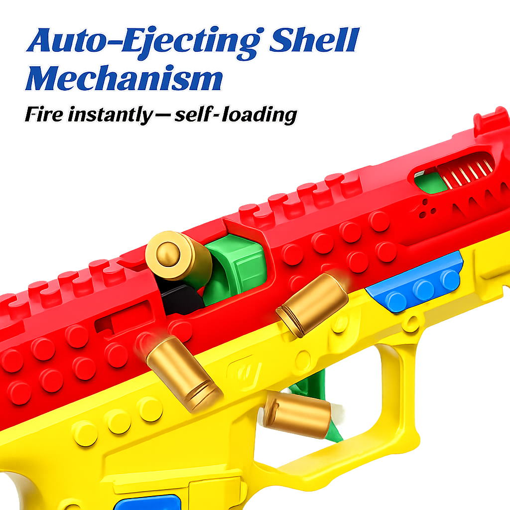 Load foam darts into reusable casings, seat them in the magazine, rack the slide, and fire — sending shells flying with every trigger pull!